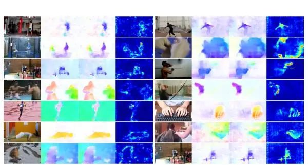 左右分别为不同的flow算法,左右的第四列为普通flow和action loss 来fine tune 过的flow的差值。可以看出,差异主要集中在人体的内部与边缘区域。