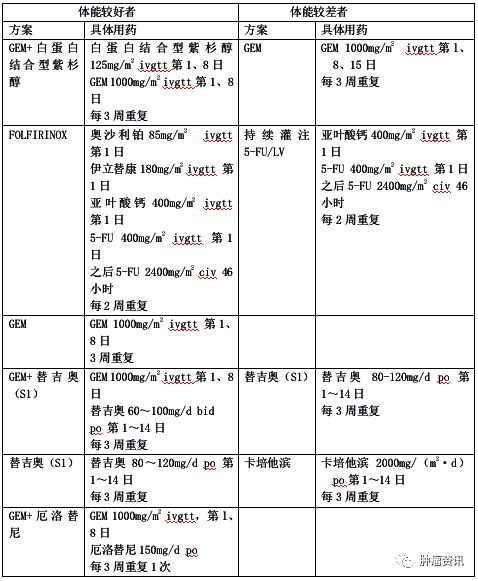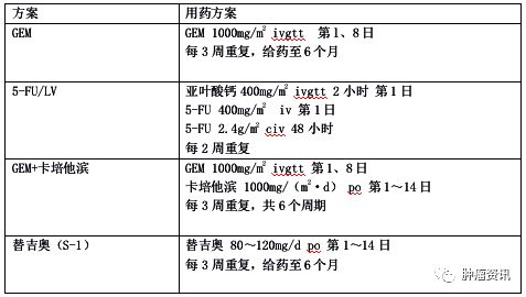 同步化疗方案单药首选采用 GEM 或氟尿嘧啶类(5-FU 持续静脉滴注,或卡培他滨,或 S-1),或者给予多药联合GEM 或氟尿嘧啶类为基础的方案。