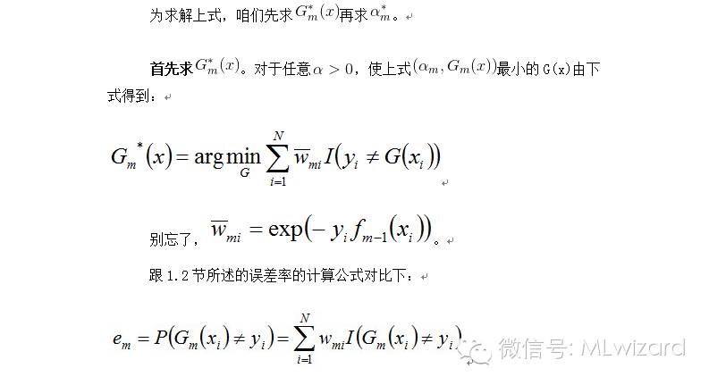 综上,本节不但提供了Adaboost的另一种理解:加法模型,损失函数为指数函数,学习算法为前向分步算法,而且也解释了最开始1.2节中基本分类器及其系数