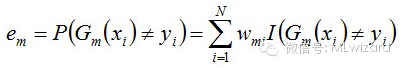 b. 计算Gm(x)在训练数据集上的分类误差率