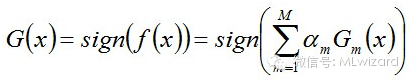 你甚至可以说,这个最终分类器其实就是一个加法模型。只是这个加法模型由基本分类器及其系数