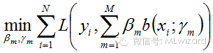 就这样,前向分步算法将同时求解从m=1到M的所有参数(、