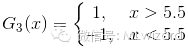 很明显,G2(x)把样本“3 4 5”分错了,根据D2可知它们的权值为0.0715, 0.0715, 0.0715,所以G2(x)在训练数据集上的误差率e2=P(G2(xi)≠yi) = 0.0715 * 3= 0.2143。