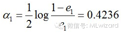 这个a1代表G1(x)在最终的分类函数中所占的权重,为0.4236。