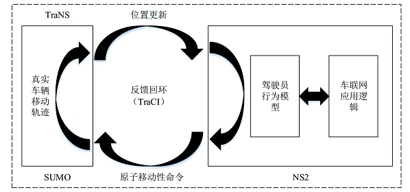 TraNS 是开源的车联网仿真平台,提供两种操作模式,第一种是以网络程序为中心的模式,主要用于不影响车辆节点的实时移动性的网络程序,如数据交换和音乐下载等;第二种模式是以应用程序为中心的模式,专门用于在交通仿真运行期间影响车辆行为的应用,如紧急警报和防撞应用。
