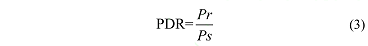 f)数据包投递率(packet delivery ratio,PDR),PDR 为目标节点接收到的数据包与源节点应用层发送的数据包的比值关系,即正确传输数据包的统计度量,主要体现了车联网的两个主要特性:网络可靠性;网络拥塞/通信状况。其计算公式为: