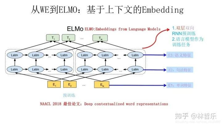 传统word2vec无法解决一词多义,语义信息不够丰富,诞生了ELMO