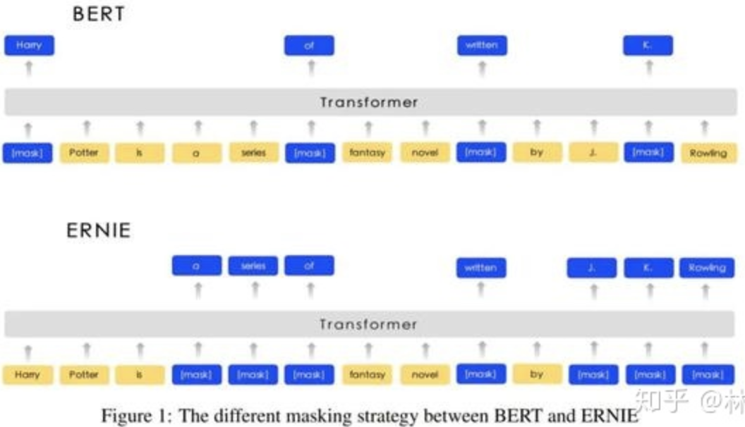 BERT中mask代替单个字符而非实体或短语,没有考虑词法结构/语法结构,诞生了ERNIE