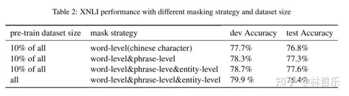 三种mask:字层面、短语层面、实体层面(引入外部知识,模型可获得更可靠的语言表示)