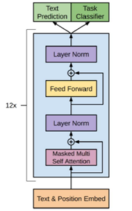 transformer的decoder里面有三个子模块,GPT只用了第一个和第三个子模块,如下图: