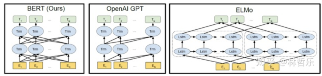 ELMO用Bi-LSTM,GPT用transformer的decoder,BERT用transformer的encoder