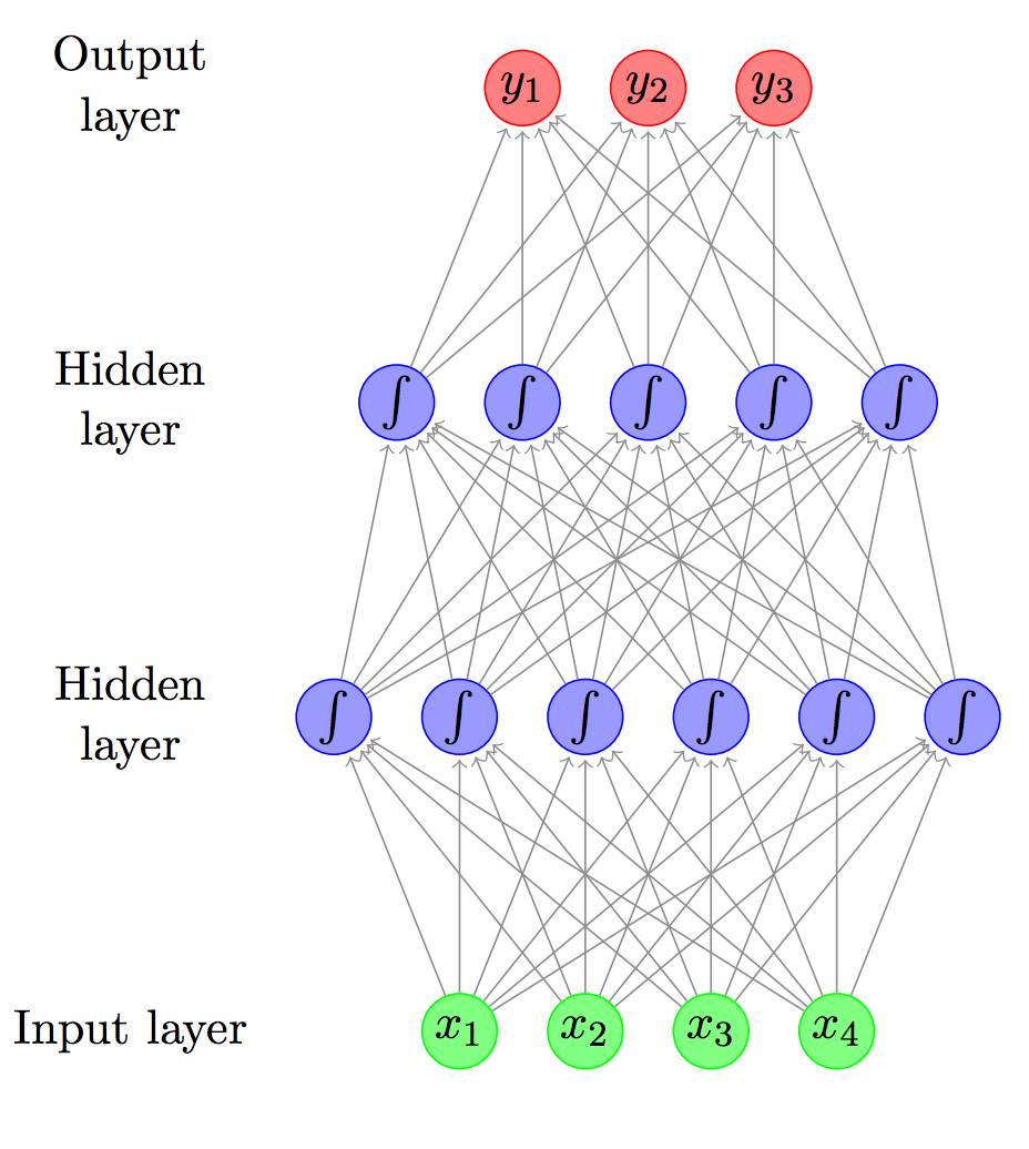以「A Primer on Neural Network Models for Natural Language Processing」中含两个隐藏层的前馈神经网络为例。这些神经网络都是使用数学概念和脑启发的形式而表示出来的。通常神经网络的研究论题包括如下几个: