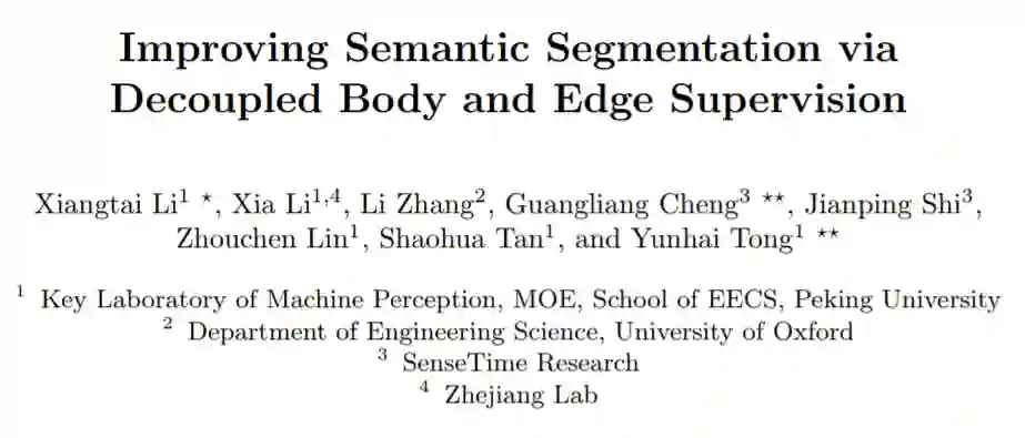 文解读的是ECCV 2020 论文《Improving Semantic Segmentation via Decoupled Body and Edge Supervision》,作者来自北京大学、牛津大学、商汤科技以及之江实验室。本论文