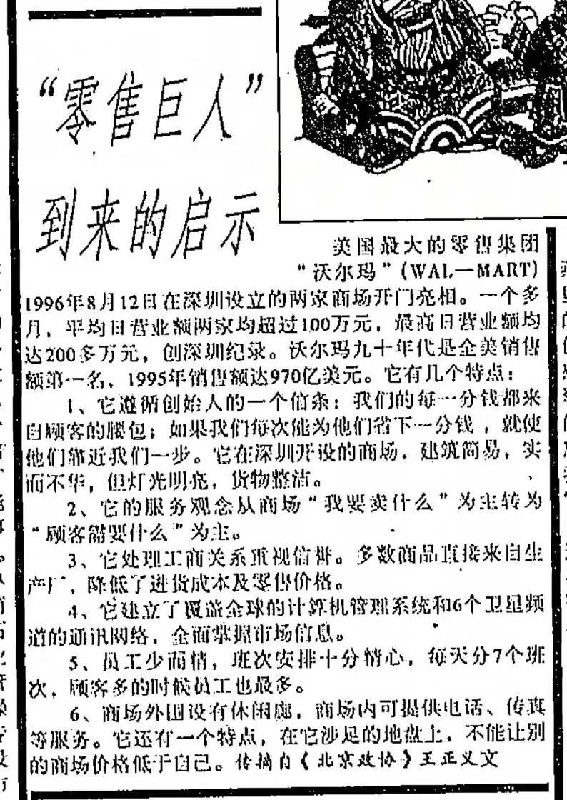 真正的对手是美国人山姆.沃尔顿创办的沃尔玛,它在一年后进入中国。