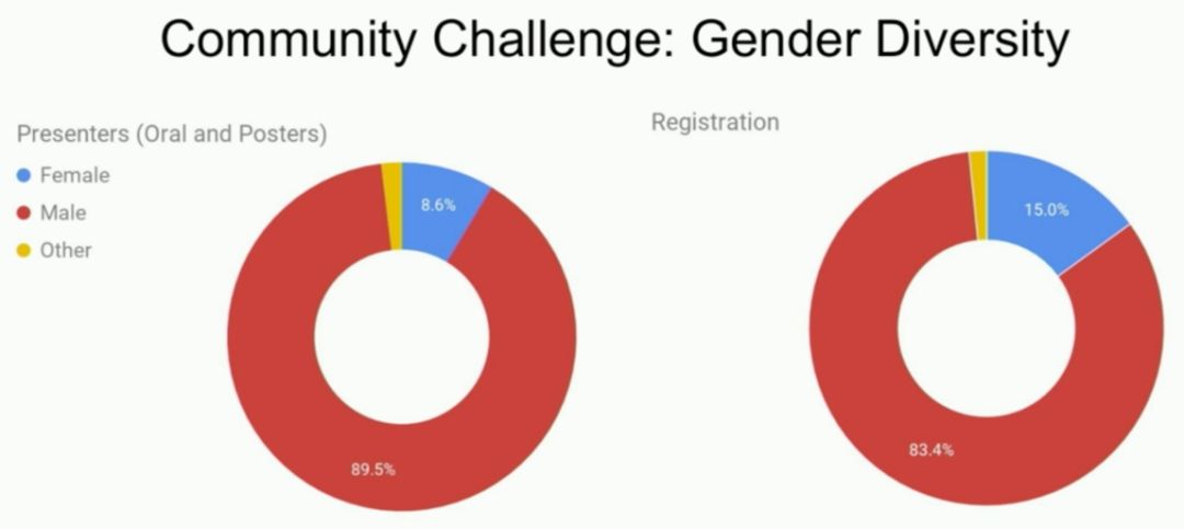 只有8.6%的展示者(oral和poster)和15%的参会者是女性;