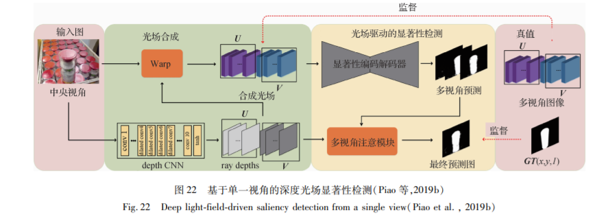 自Li等人(2014)利用光场数据进行显著性检测后,基于光场数据的显著性检测迅速发展,出现了很多基于光场数据的显著性检测算法(Zhang等,2015;Li等,2015b;Zhang等,2017;Wang等,2018b;Zhang等,2020),但是一直没有完整的关于光场显著性检测进展的文献综述和详细调查,目前,基于光场数据的显著性检测研究在该领域内仍然存在很大的进步空间,因此有必要进行全面综述和讨论。本文系统描述了基于光场数据的显著性检测研究进展和面临的挑战,希望能为进一步研究显著性检测提供帮助,并期待能启发更多的创新型工作。