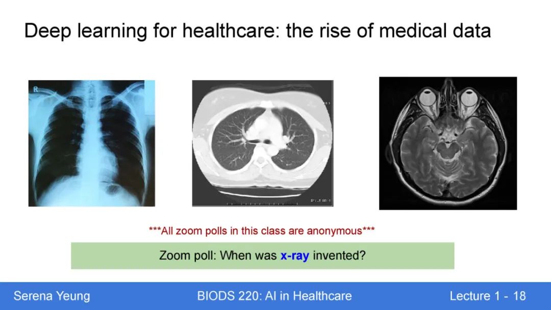 医疗保健是人工智能最令人兴奋的应用领域之一,在医学图像分析、基于电子健康记录的预测和精确医疗等领域具有变革潜力。本课程将深入探讨医疗领域人工智能的最新进展,特别关注医疗问题的深度学习方法。我们将从神经网络基础开始,然后在各种医疗保健数据(包括图像、文本、多模态和时间序列数据)的背景下研究前沿的深度学习模型。在本课程的后半部分,我们将讨论在社会应用(如医疗保健)中整合人工智能所面临的开放挑战,包括可解释性、健壮性、隐私性和公平性。本课程旨在为来自不同背景的学生提供医疗领域人工智能前沿研究的概念理解和实践基础。