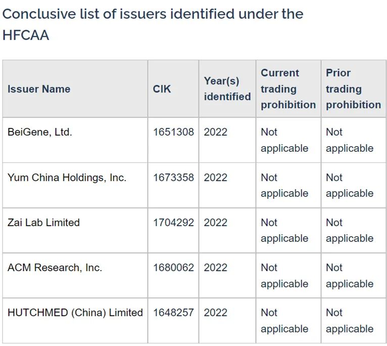 如果「确定摘牌名单」中的公司没有提交或提交的文件不符合 SEC 要求,连续三年被认定为被识别公司,理论上则会在 2023 年年报后(即 2024 年初)面临退市。