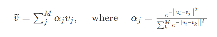 我们首先计算视频U中的ui在视频V的soft nearest neighbor,然后再反过来求