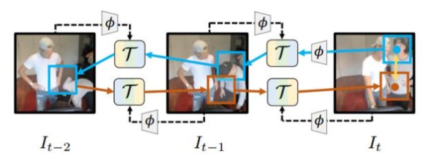 网络的端到端训练是基于Backward-forward的iterative tracking后的模板匹配来实现的。如下图所示,在backward过程,从It -->It-1 --> It-2 ,通过迭代进行上述的tracking operation