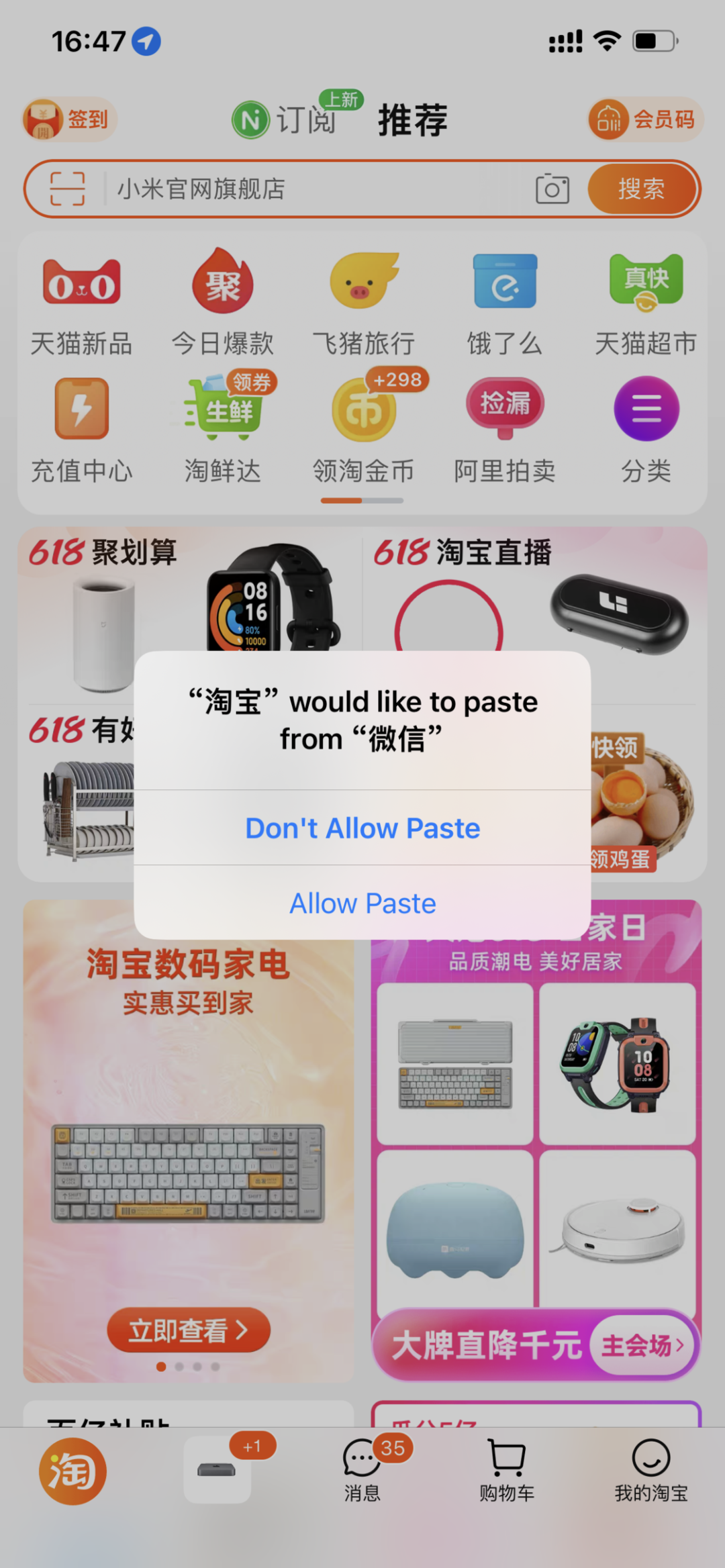 在 iOS 16 中,Apple 对隐私保护领域的更新更进一步,允许我们在应用读取剪贴板内容之前直接选择拒绝,给了我们更加灵活的选项。