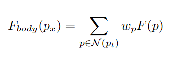从flow特征图δ计算出的wp代表了扭曲空间网格上的双线性核权重。N代表所涉及的相邻像素。