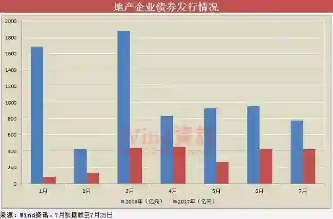数据显示,7月以来,房地产企业内地发债421.6亿元。今年以来,房企国内发债规模2216.71亿元,较去年同期的7478.61亿元,大幅下滑70.4%。