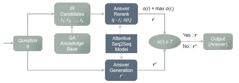 本文给出了一种 attentive Seq2Seq 的模型来结合 IR 和生成模块,从而对原结果进行 rerank 优化。阿里已经把这个投入了阿里小蜜的商用。