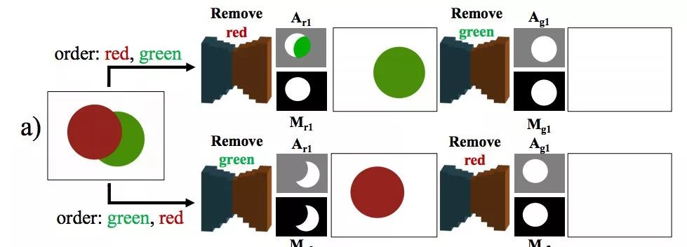 根据Mask来看,先去红色再去绿色,两个Mask之间会有交集,反过来就完全没有交集了。