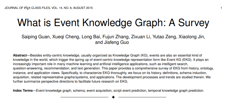 知识图谱(KG)是谷歌在2012年发布的一种流行的知识表示形式。它关注名义实体及其关系,因此代表静态知识。然而,世界上存在着大量的事件信息,传递着动态的程序性知识。因此,以事件为中心的知识表示形式(如Event KG (EKG))也很重要,它将实体和事件结合在一起。它促进了许多下游应用,如智能搜索、问答、推荐和文本生成[1]、[2]、[3]、[4]、[5]。