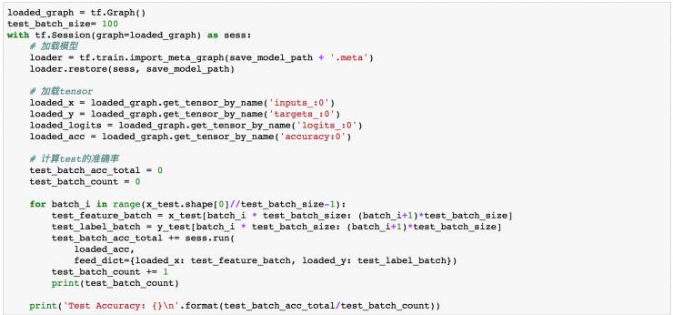 我们把训练结果加载进来,设置 test 的 batchs_size 为 100,来测试我们的训练结果。最终我们的测试准确率也基本在 70% 左右。