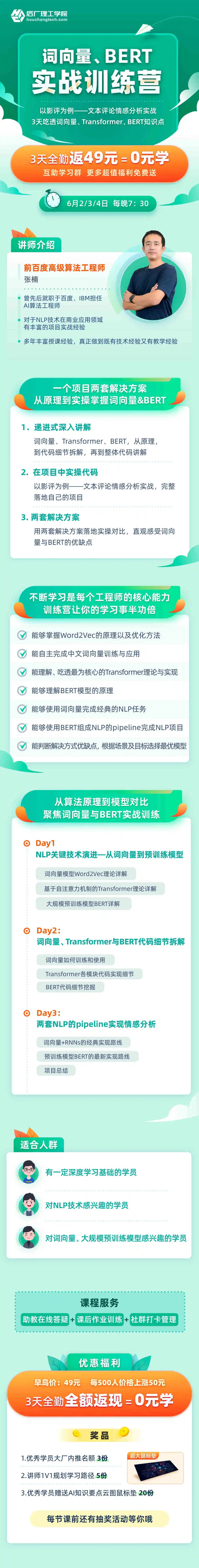 想入门并掌握当下极具前景的NLP技术,从文本情感分析入手是个不错的选择。所以,强烈推荐你参加