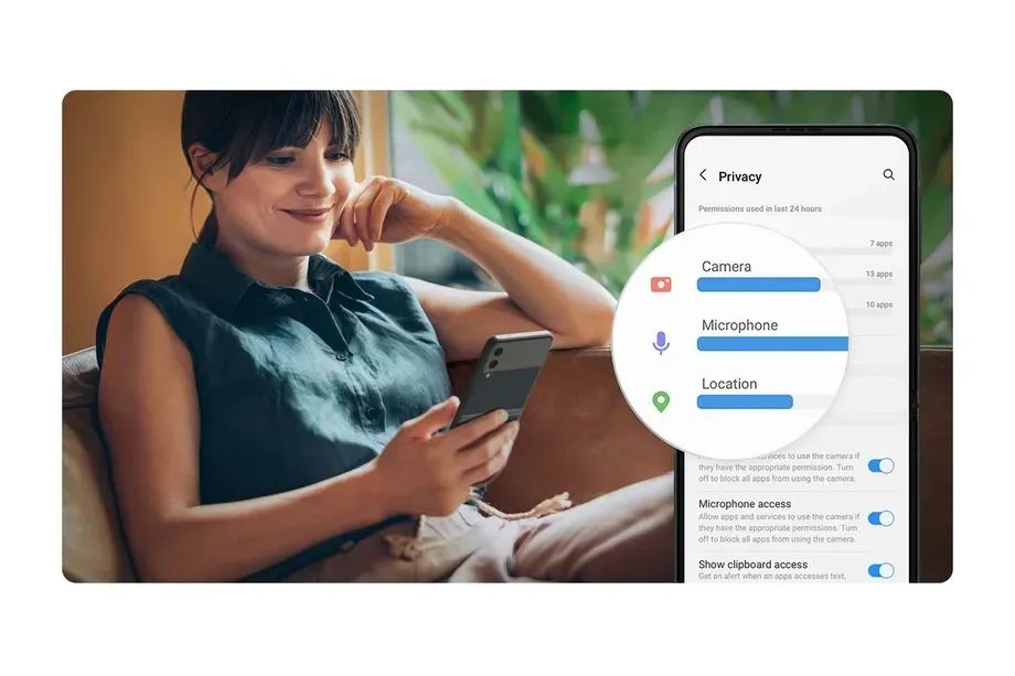 功能方面,One UI 4.0 也向原生 Android 12 看齐,加入了隐私面板、相机与麦克风调用提醒,并联合了与谷歌、微软打造跨设备协作体验。Windows 系统的“你的手机”应用是三星的老朋友,提供了一系列协同操作功能,它也因为在三星手机上才能解锁完整体验,被戏称为“你的三星手机”。
