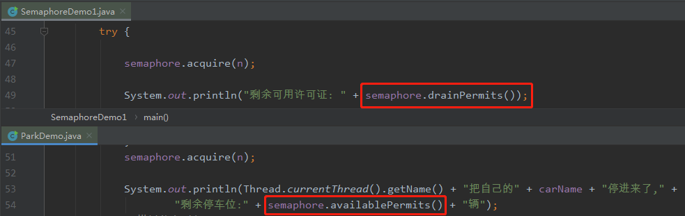 你仔细看:availablePermits 只是 return 当前可用的许可证数量。而 drainPermits 是 acquires and return,它先全部获取后再返回。