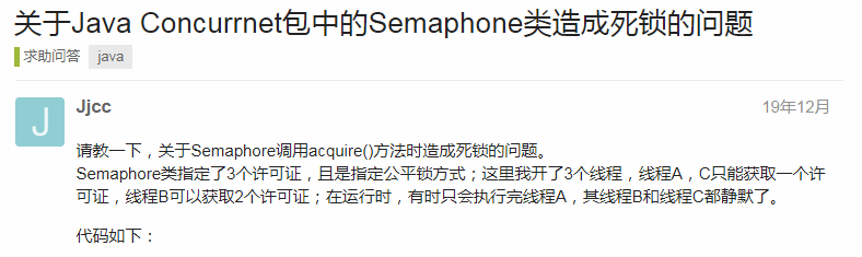 知道 semaphore 是干啥的同学可以先看看上面的代码,为什么造成了“死锁”。