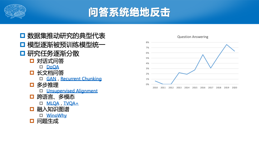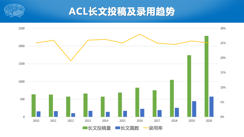2020年5月23日,有幸受邀在中国中文信息学会青年工作委员会主办的 AIS(ACL-IJCAI-SIGIR) 2020顶会论文预讲会上介绍了ACL会议近年来的研究趋势,特整理成幻灯片配文字版,希望对相关领域的研究者有所帮助。由于视野所限,时间仓促,特别是ACL 2020的录用论文列表刚发布不久,因此统计的数据和得出的结论难免有失偏颇,如有不当之处,还敬请指出。另外,特别感谢组内的多位博士生帮助进行数据整理。