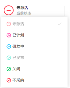 所以,在我司公共Backlog中的需求分为6个状态:未激活、已计划、研发中、已发布、关闭、不采纳,需求提交人根据需求状态就可以判断需求是否被采纳,如果被采纳已经进行到哪一阶段等信息,方便及时回复给客户。
