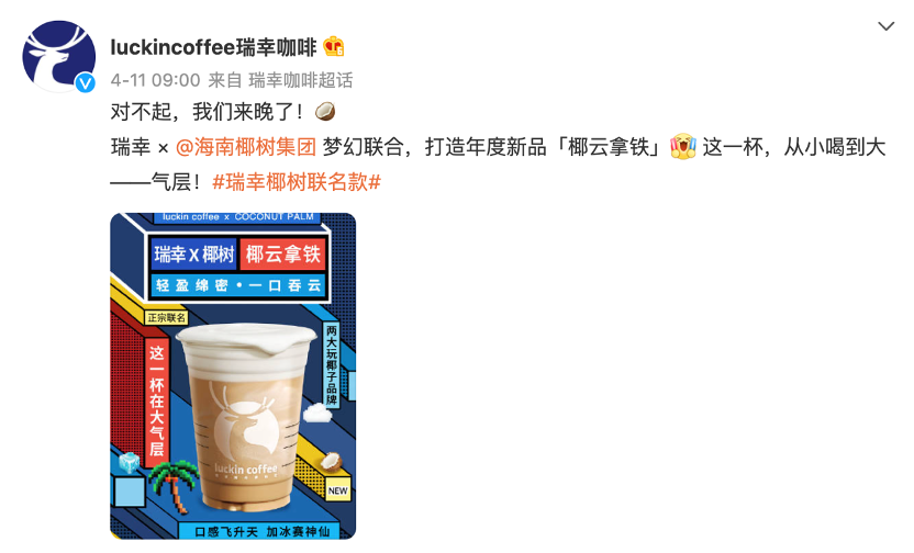 凭借4月11日与椰树集团联名推出的新品“椰云拿铁”,瑞幸当之无愧是4月中国咖啡市场“话题王”。