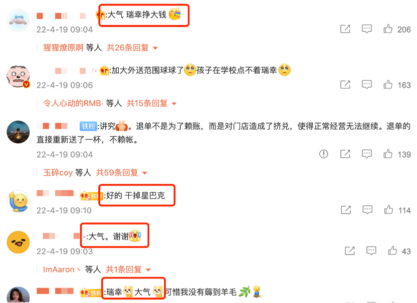 一系列“组合拳”的确给瑞幸重夺“国民咖啡”的头衔带来了显著的催化效应。不仅新品“椰云拿铁”销量爆棚——首发日总销量超66万杯,上市首周销量破495万杯,销售总额超8100万,瑞幸还凭借“饿了么价格乌龙”成功登上热搜,赚足眼球,更是在公布事件解决方案后拉拢了不少消费者的好感,频频表示“瑞幸大气”,甚至鼓励瑞幸“干掉星巴克”。