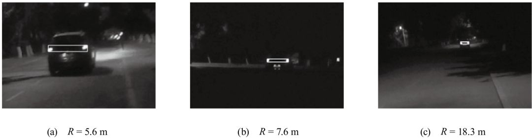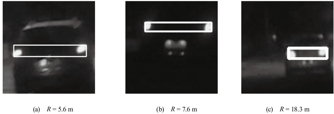 试验结果表明:研究使用的毫米波雷达和机器视觉融合的方法可以有效识别夜间前方车辆。该方法对于不同形状的车辆尾灯具有很好的识别效果。由于车尾灯重叠或遮挡会发生验证失误,这是下一步研究的重点。