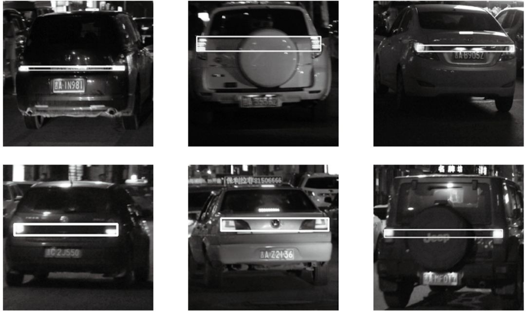 夜间由于光线强度不够,大部分白天的车辆特征信息已经不可用,因此用于白天的车辆检测算法基本失效。车辆尾灯是夜间车辆的明显特征,目前,对于夜间前方车辆检测识别的研究主要是利用单目视觉传感器,获取车辆前方的视觉感知信息,基于图像信息提取尾灯特征进行前方车辆识别。