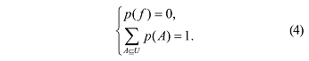 定义 1:设辨识框架 U 中的元素满足不相容条件,命题 A 对基本概率赋值函数 p 赋值 p(A) 是集合 2^U 到 [0,1] 的映射,满足如下条件: