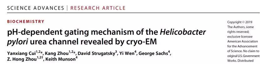 Z. Hong Zhou教授表示,“幽门螺旋杆菌在世界范围内仍然是一个影响健康的关键因素,而此次解析尿素通道可能会提供消灭这种病原体的可行药物靶点,这对全球胃炎胃溃疡的治疗具有非凡的意义”。