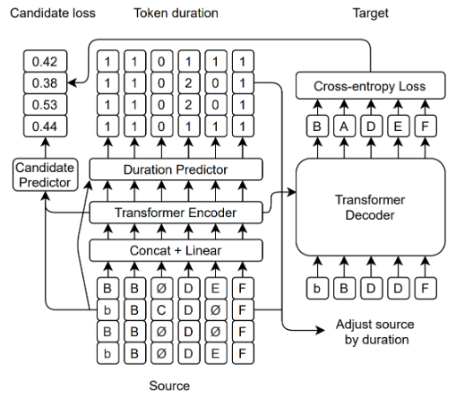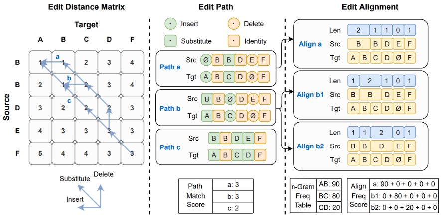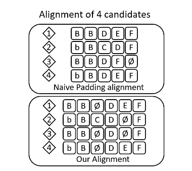 为了能够让纠错模型更好地利用多输入(多个语音识别结果)信息,研究员们对 FastCorrect 的对齐算法和模型结构进行了一系列调整。