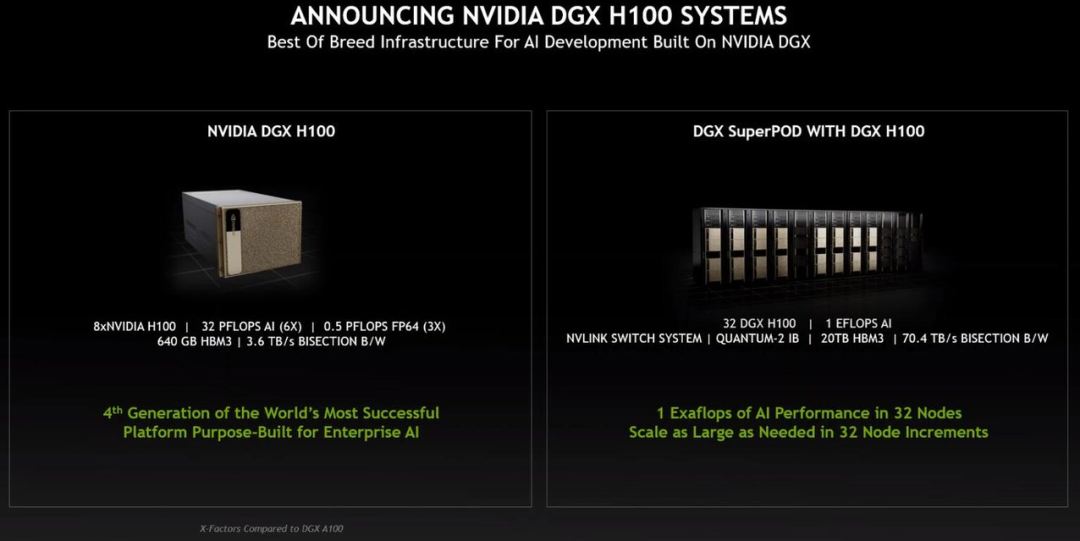 英伟达计划在今年三季度推出配备 H100 的系统,包括 DGX、DGX SuperPod 服务器,以及来自 OEM 合作伙伴使用 HGX 基板和 PCIe 卡服务器。