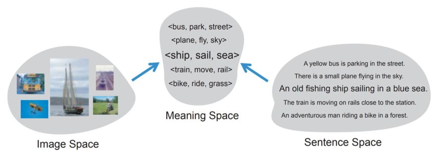 最为主流的思路,使用不同的网络将视觉和语言信息同时映射到「语义空间」,然后在「语义空间」进行对比与检索。