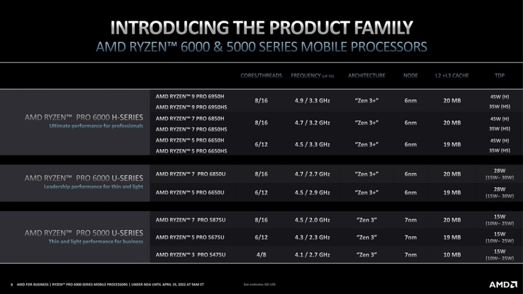 AMD 发布 Ryzen Pro 6000 系列处理器