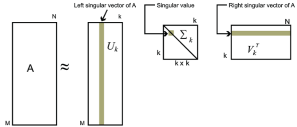 如下图所示,现在矩阵A只需要灰色的部分的三个小矩阵就可以近似描述了。