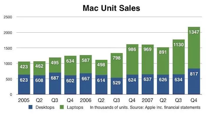 市场份额的变动也体现了这一系列广告的渗透力。根据统计数据显示,在《Get a Mac》广告上线第一个月后,苹果的 Mac 电脑销售量上涨了 20 万台;到了 2006 年第四季度,苹果的 Mac 销量已经获得同比 39% 的增长。