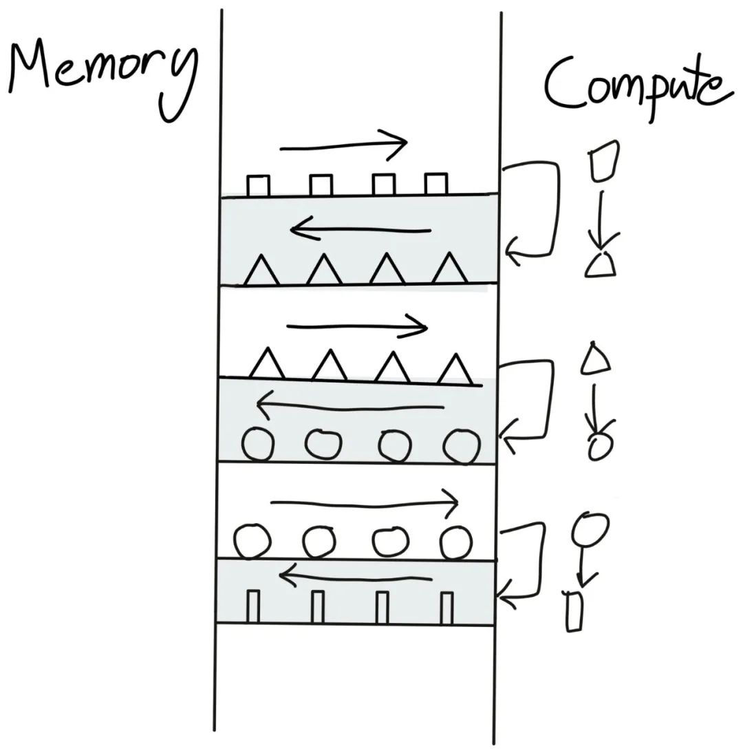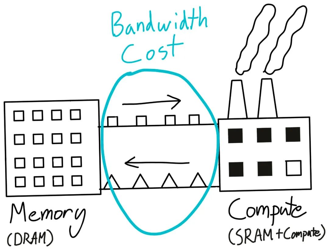 一种理解计算的方式是把它想象成工厂。我们把指令传达给我们的工厂(额外消耗),把原始材料送给它(内存带宽),所有这些都是为了让工厂运行得更加高效(计算)。